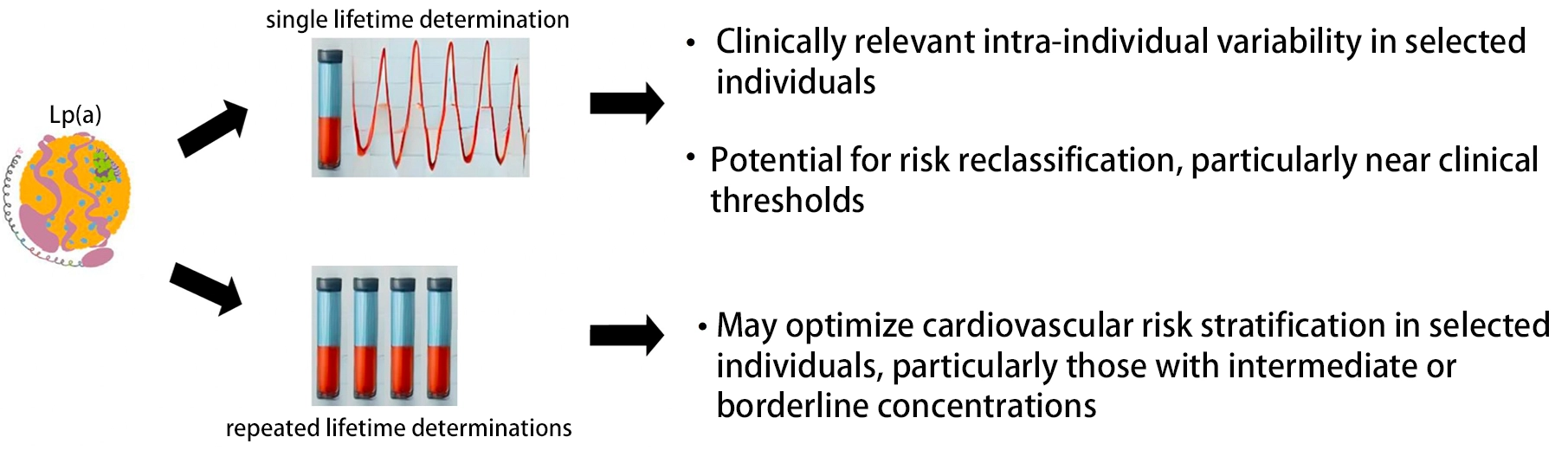 A conceptual framework summarizing the potential implications of single versus repeated Lp(a) measurement for cardiovascular risk stratification is shown in Figure 1.