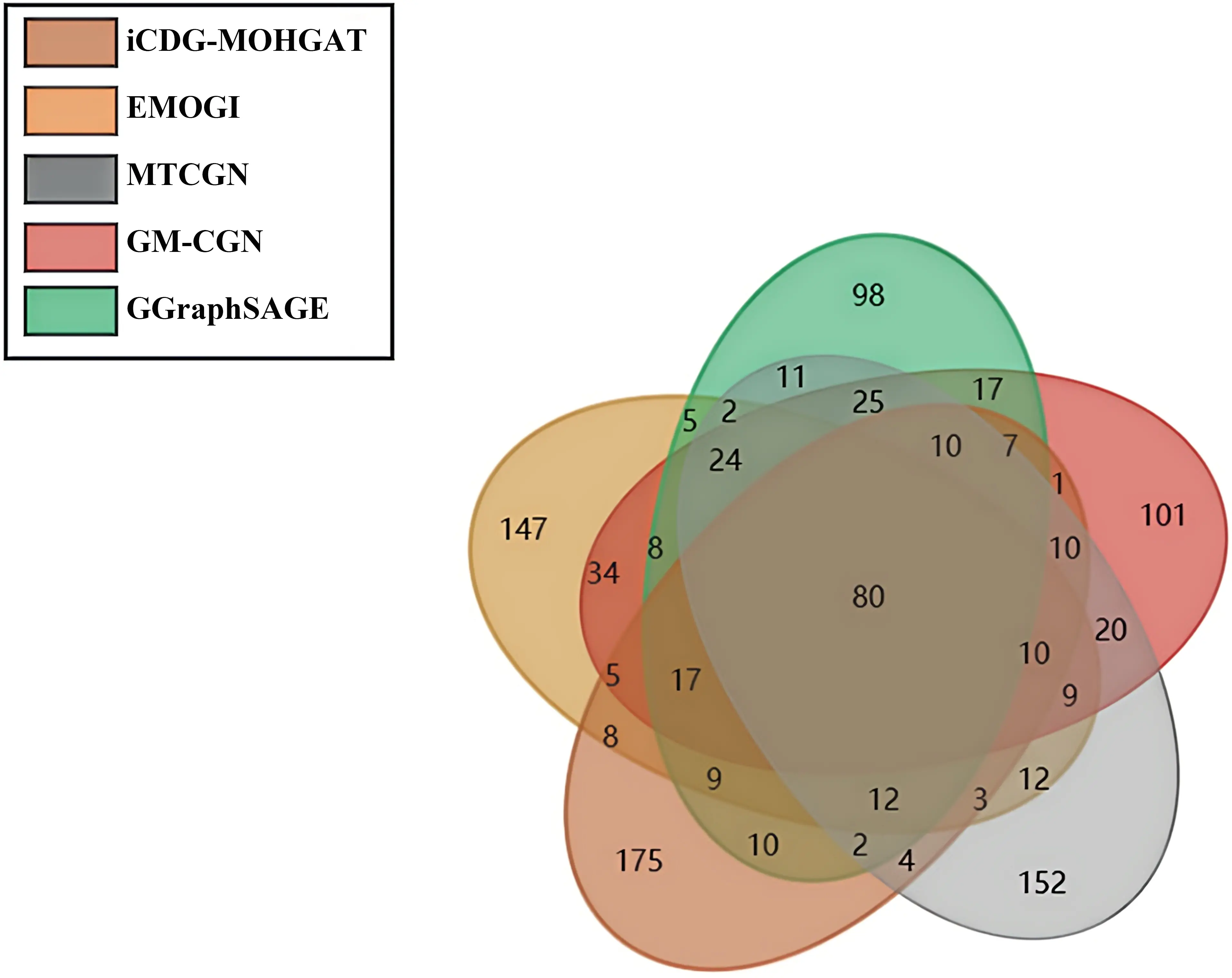 Figure 7. More than 53% of the new driver genes predicted by iCDG-MOHGAT did not overlap with other methods.