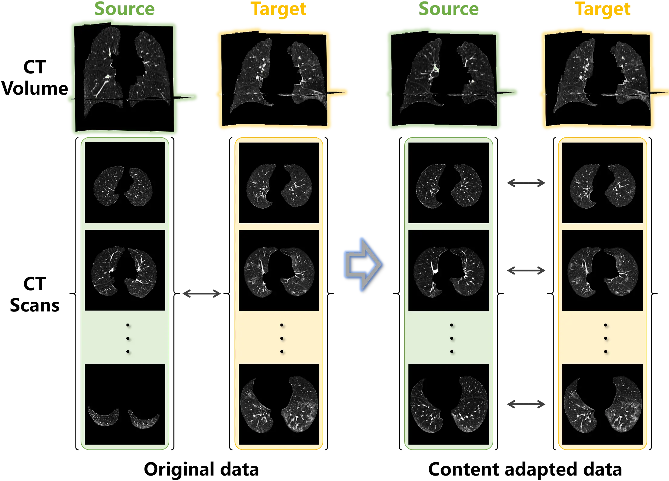 Figure 8. Examples of the original unpaired lung data and the content adapted data. Paired samples are obtained from the unpaired data using content adaptation.