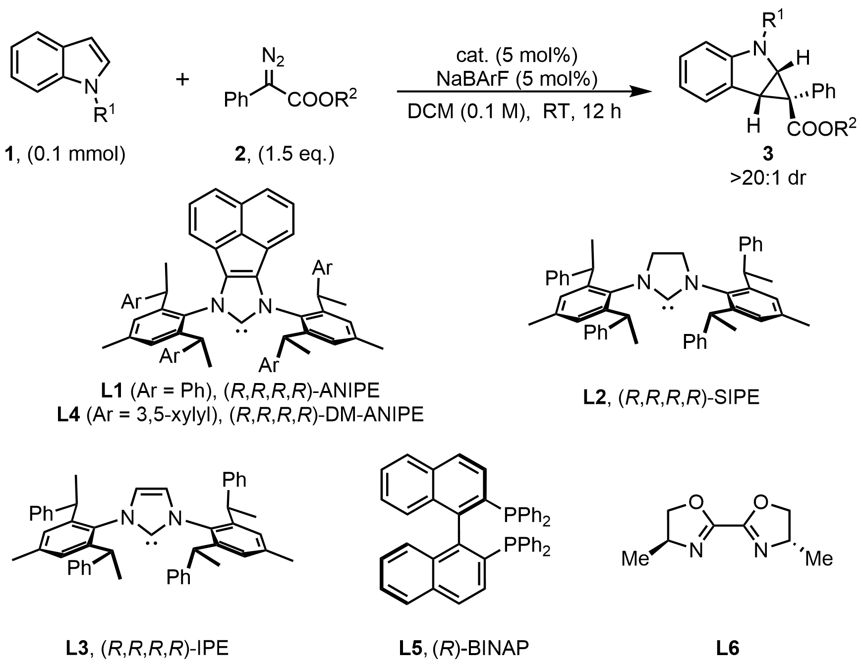 2.1 Typical procedure for asymmetric NHC/Cu catalyzed intermolecular cyclopropanation of indoles with diazo esters
