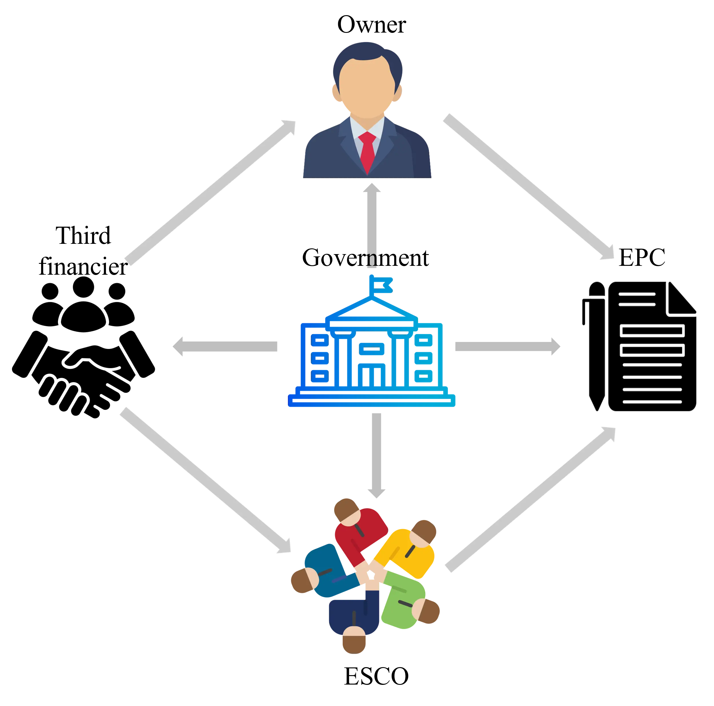 Figure 3. Stakeholder diagram in the adoption of EPC. EPC: energy performance contract; ESCO: energy service companie.