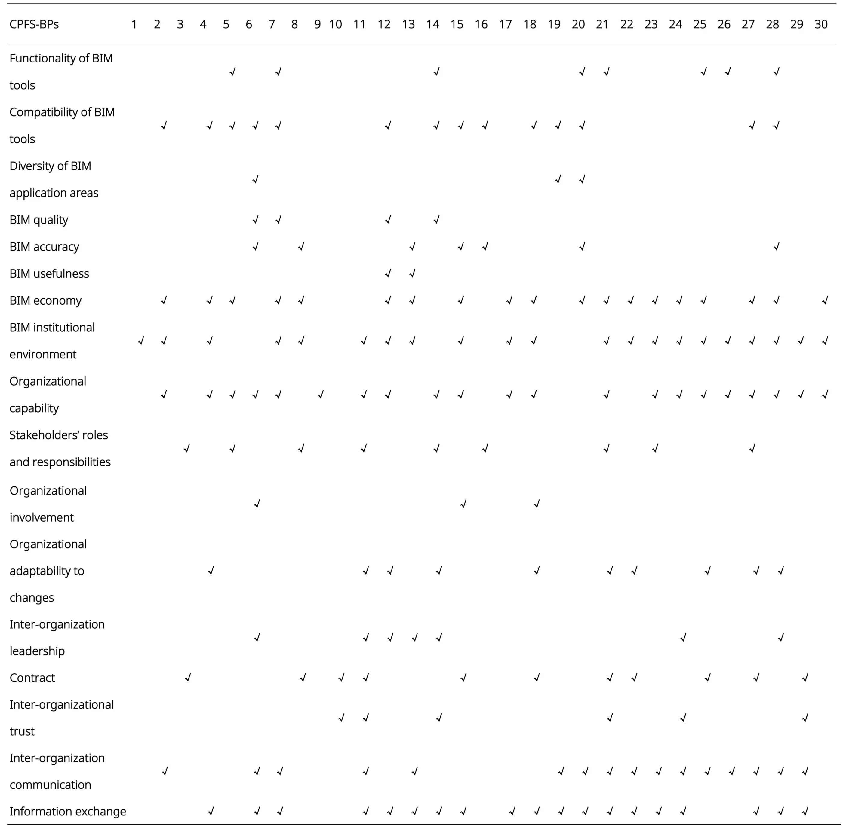 | Contract(CPFs-BP14) | A correct and matching contract should be constructed because proper contract management will positively influence project performance[16]. It works as a measure to improve BIM collaboration and reduce subsequent disputes[36]. |