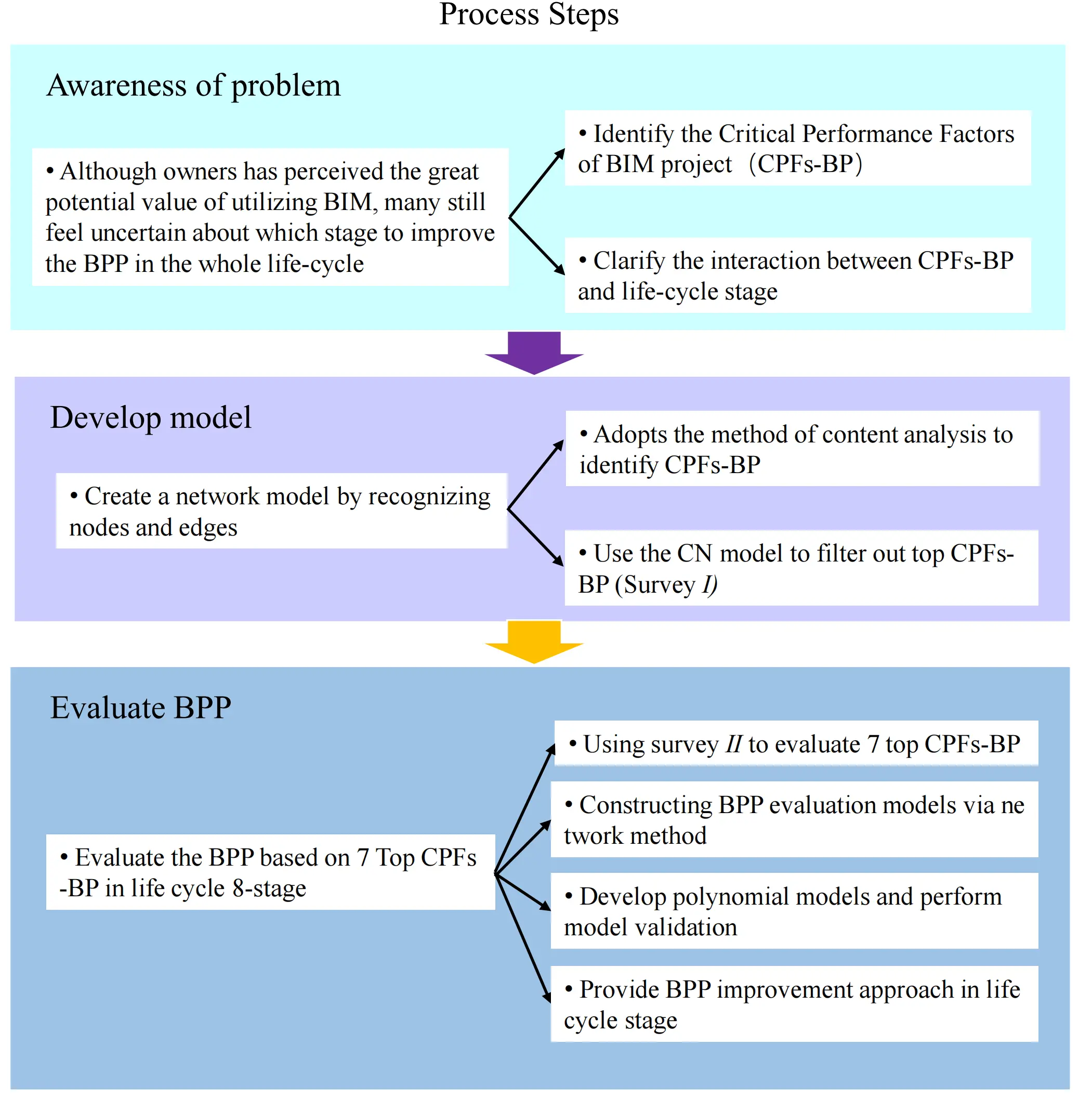 Recent studies have investigated BPP using a variety of approaches, but no study has developed a phase-based approach to predict and improve BPP considering multiple CPFs-BP. Besides, few quantitative studies have attempted to clarify the complex relationships between the project stages and CPFs-BP. Therefore, this study answers two research questions: 1) At what point in the project lifecycle might the use of BIM technology increase BPP? 2) How to increase BPP? To fill a research need, this study will identify