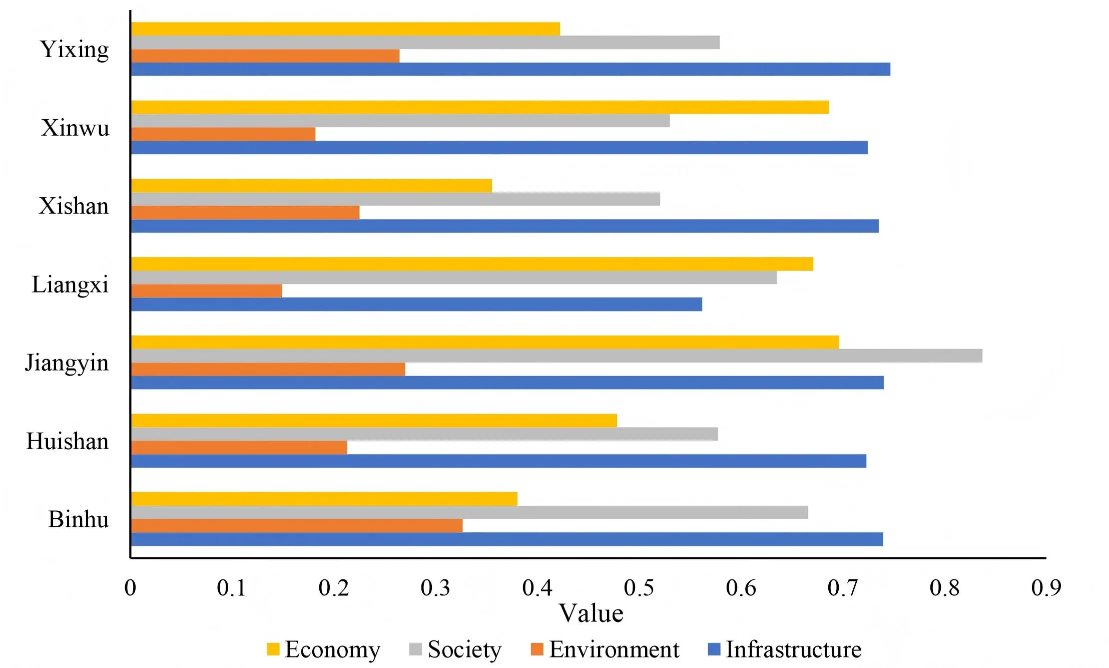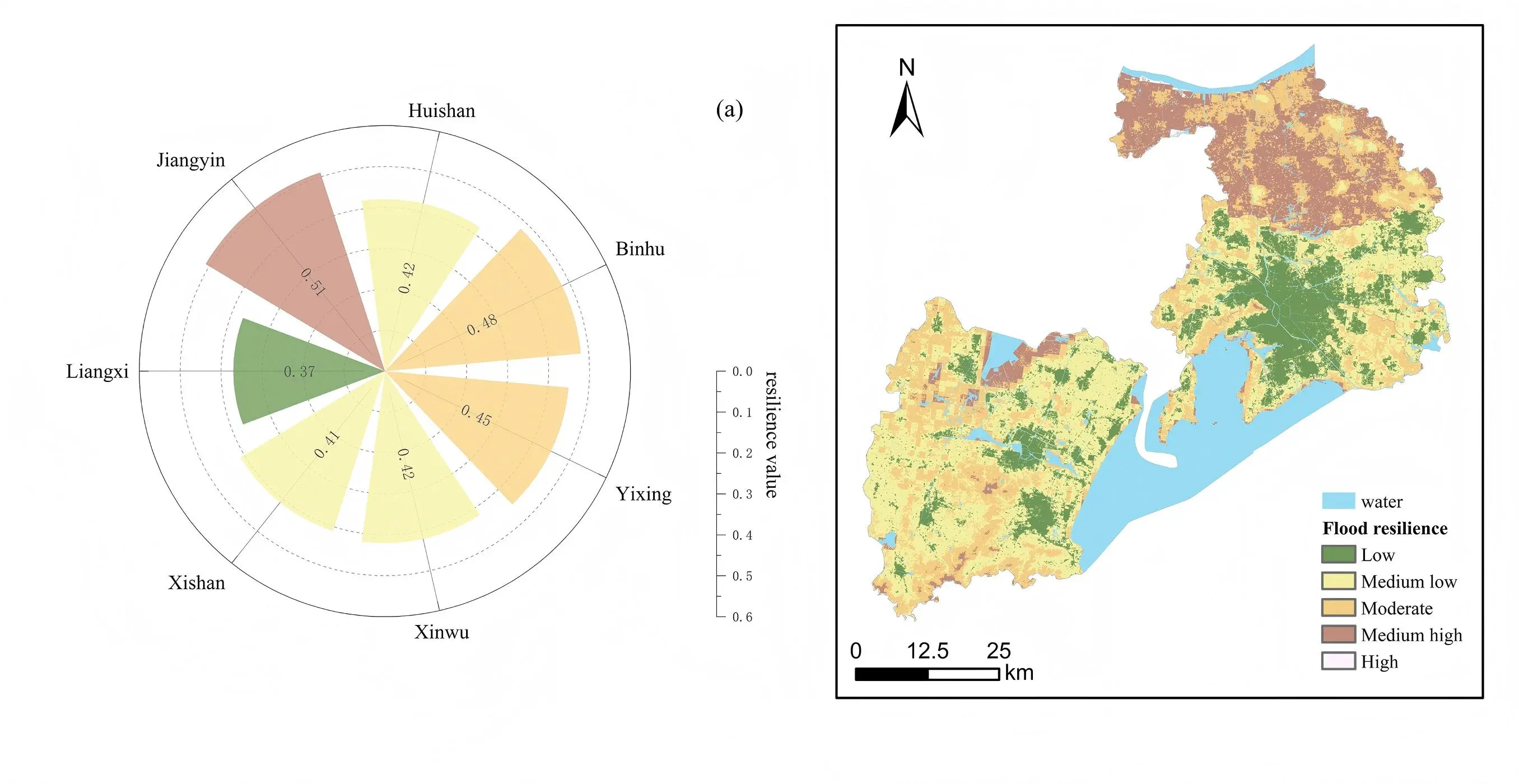 3. Social engagement. Wuxi's strength in IoT technology should be harnessed to accelerate the development of an intelligent flood monitoring and early-warning system. Deploying sensors in identified high-risk zones for real-time data collection, integrated with the city operations platform, will enable dynamic risk assessment and precise emergency response, which directly builds upon the positive role of “internet users” highlighted in our social dimension analysis. Furthermore, public participation and individual resilience must be strengthened. This involves establishing community-based flood response teams, conducting localized risk awareness and preparedness training, and fostering mutual-aid networks. Government agencies should optimize digital communication channels for the timely dissemination of warnings and evacuation guidelines, ensuring that the high mobile phone penetration rate translates into effective risk communication.