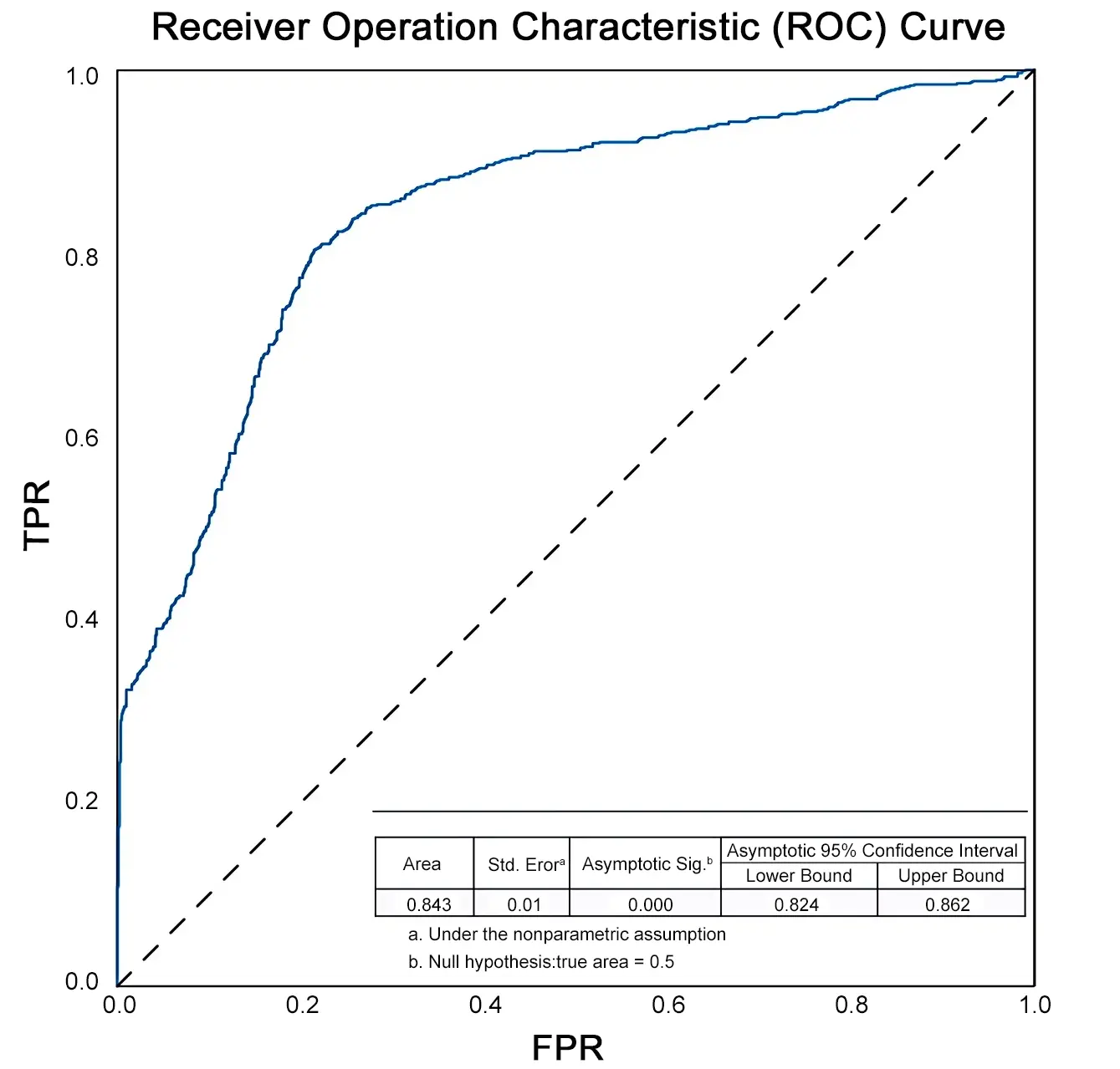 To further validate the model’s accuracy, the Receiver Operating Characteristic (ROC) curve and the AUC were employed, where a higher AUC value indicates better classification performance[62]. For validation, historical water-logging point coordinates from an official source were overlaid directly on the resilience raster to extract corresponding values. Non-waterlogging (non-event) points were generated using simple random sampling in ArcGIS at a 1:1 ratio with event points to form the training dataset. The random sampling ensured broad geographical dispersion of points across the study area. Visual inspection confirmed that points were not clustered exclusively within specific land-cover types, mitigating the risk of severe sampling bias. The resulting AUC value of 0.843 indicates acceptable model accuracy (Figure 8).