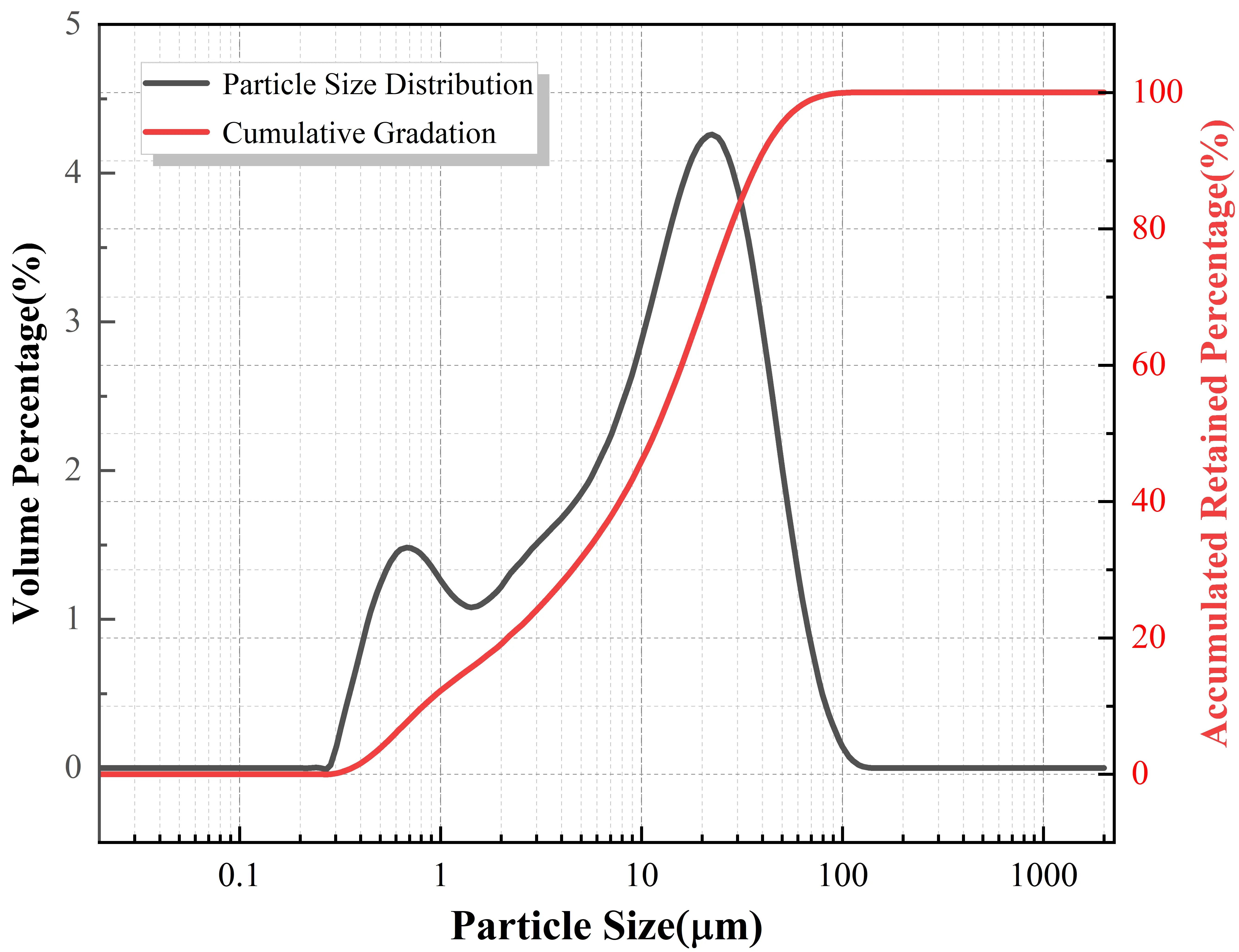 The cementitious binder utilized in this study was P.O 42.5 Ordinary Portland Cement, produced by Qilianshan Cement Co., Ltd. The cement possesses a specific surface area of 349 m2/kg and exhibits a well-graded particle size distribution. Its particle size distribution curve and microscopic morphology are presented in Figure 1 and Figure 2, respectively. For the fine aggregate,