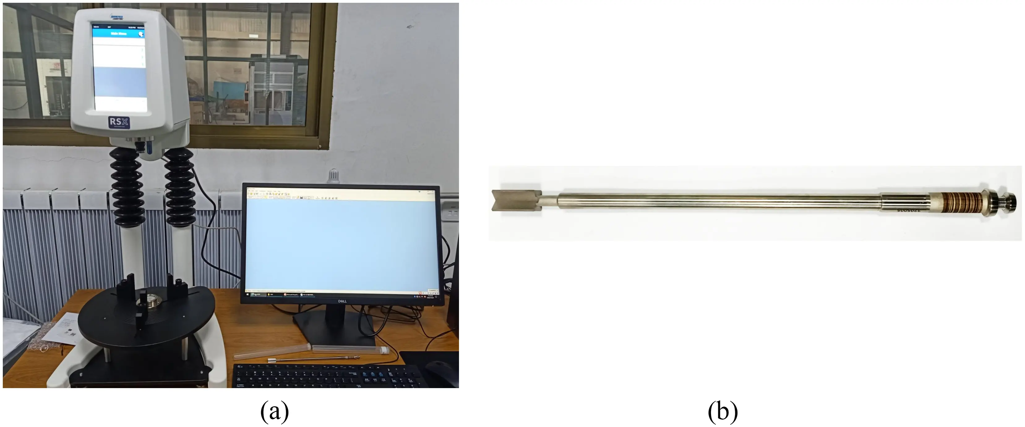 Figure 4. (a) RSX SST Concrete rheometer; (b) Coaxial four-paddle rotor (VT-20-10).