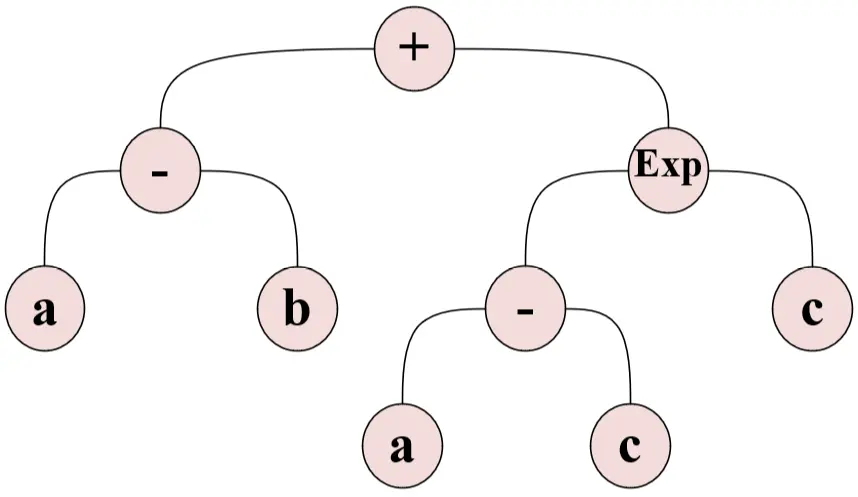 Figure 9. Sub-ETs structure of CGEP2 model. (Yellow nodes represent operators; pink nodes represent constants: c1 = 2.66, c2 = -1.19, c3 = 8.96, c4 = 1.02, c5 = 0.63,