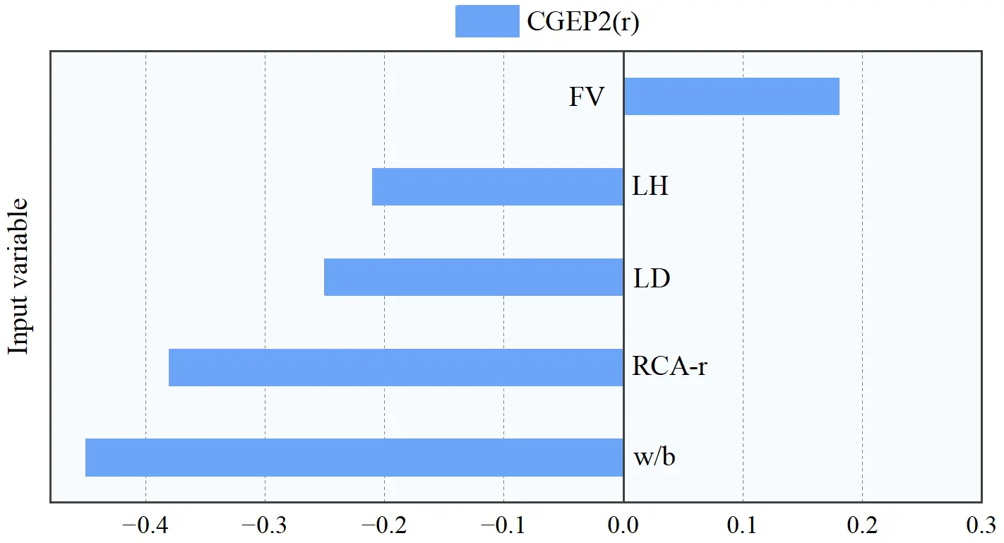 The relevance factor assesses the linear correlation strength between input variables and model outputs. It elucidates the relative statistical significance of each parameter by quantifying the direct impact of variations in individual input parameters on STS predictions. The mathematical definition is presented in Eq. (5):