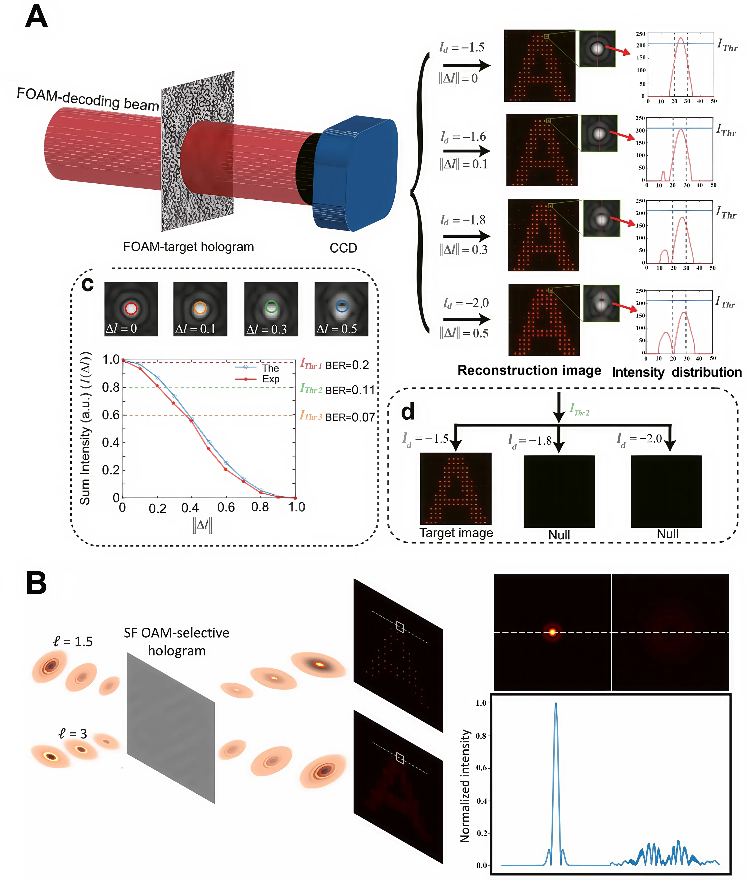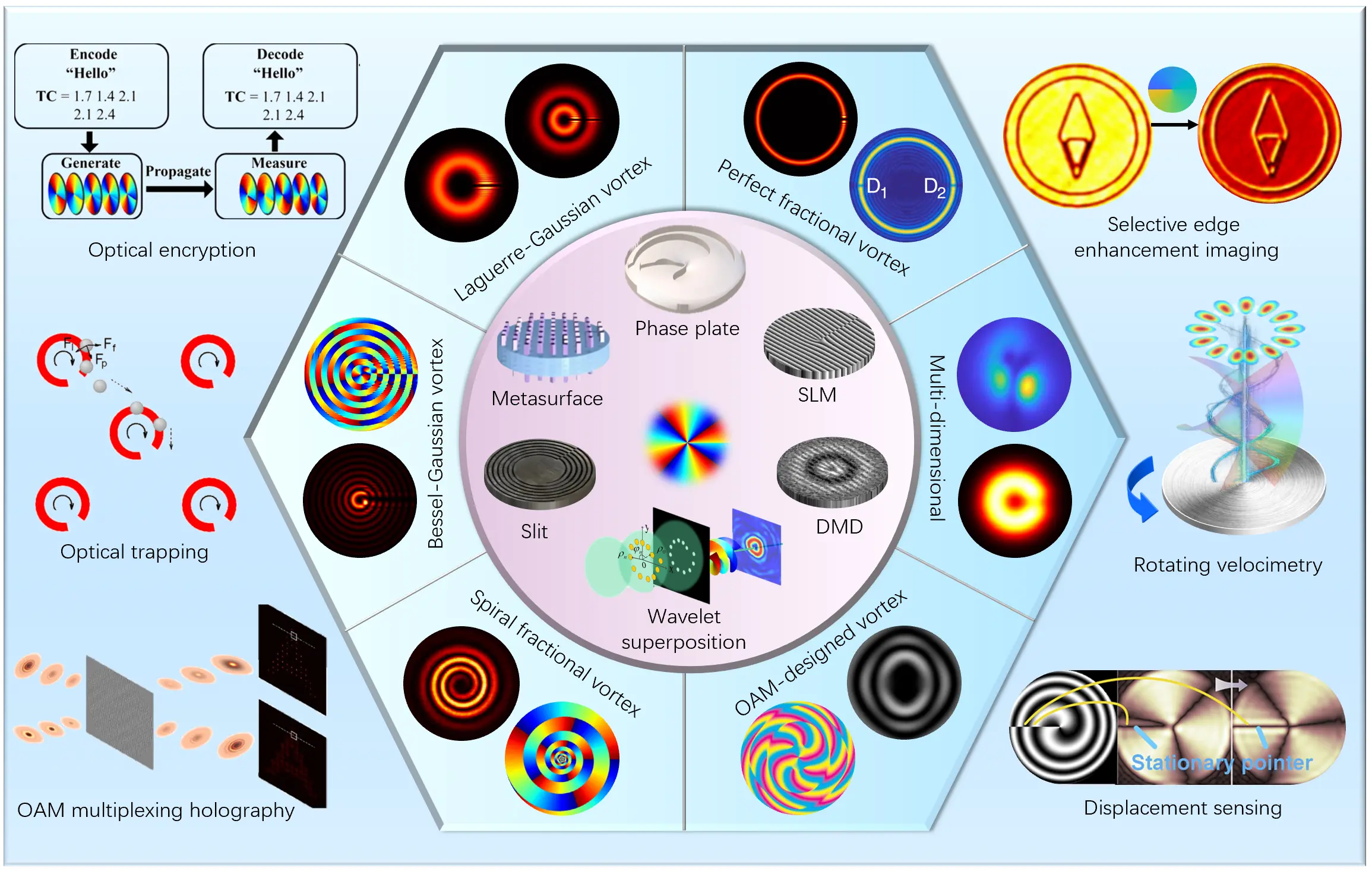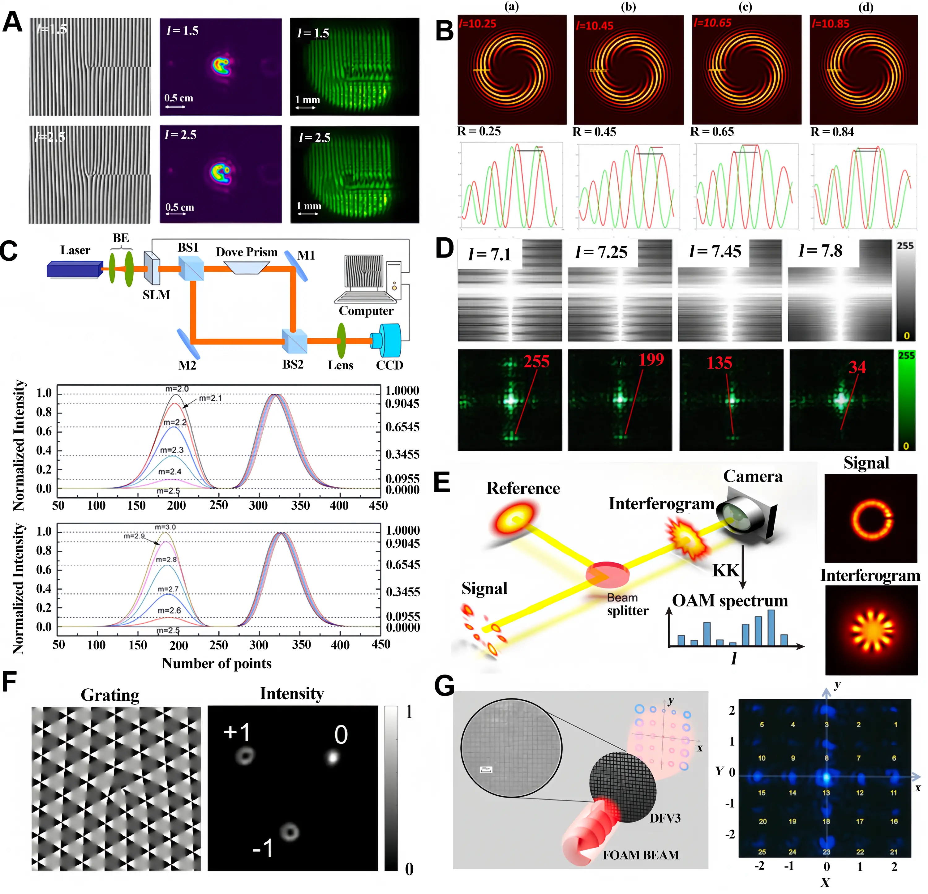 where G is the parameter related to the grating spatial frequency. When this hologram is loaded onto an amplitude-modulating device, the encoded fractional vortex beam can be reconstructed in the diffraction field, as illustrated in Figure 6A[79].