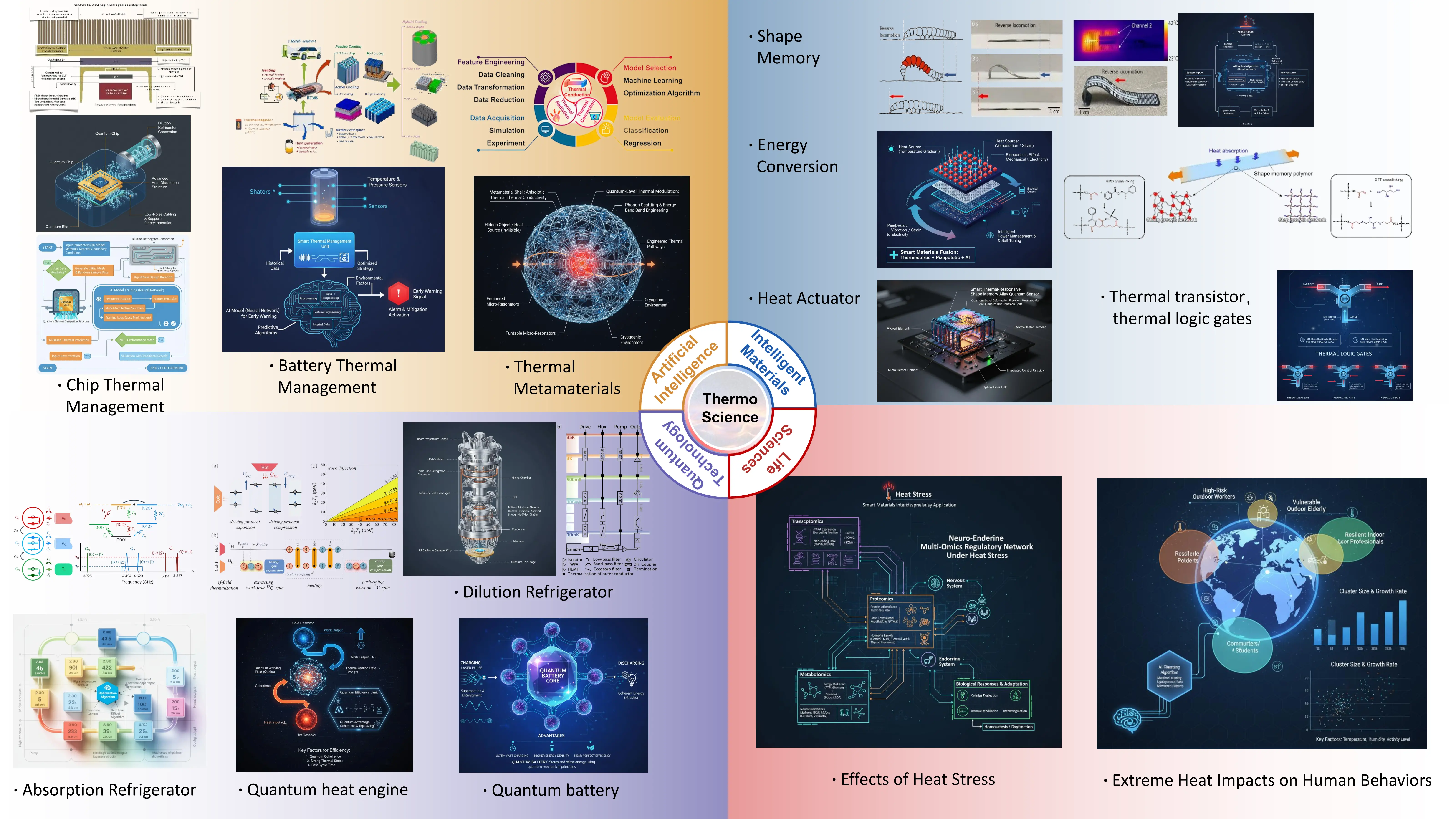 In today’s era of rapid technological development, thermal science has been integrated into cutting-edge fields such as quantum technology[13-15], artificial intelligence (AI)[16,17], intelligent materials[18-20], and life sciences[21,22] with unprecedented depth and breadth, demonstrating strong interdisciplinary and transformative characteristics[23,24] (Figure 1).