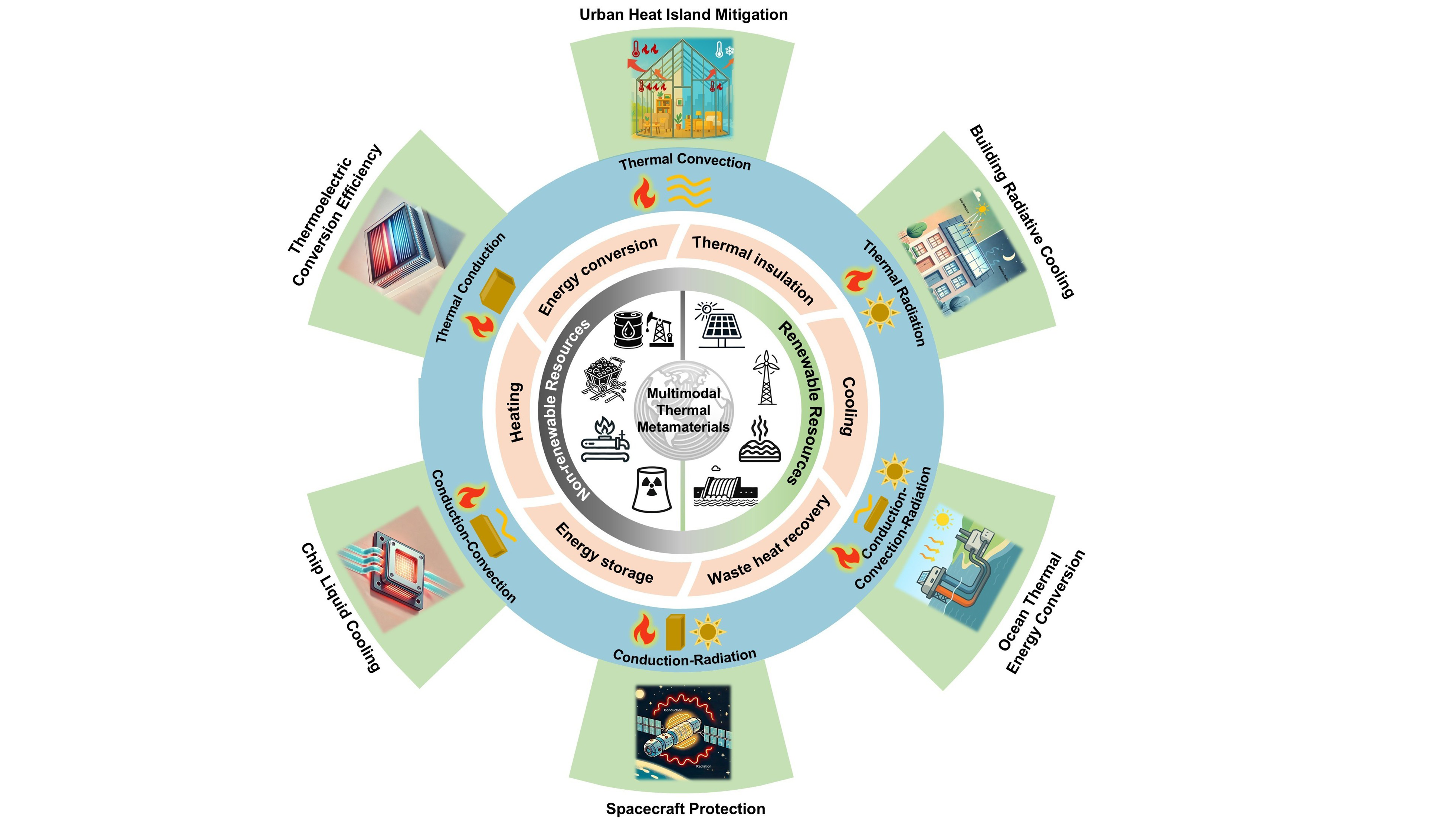 MoreEffective thermal management is crucial for global sustainability, yet it faces a fundamental challenge: traditional materials cannot dynamically regulate the three coupled heat transfer modes, namely conduction, convection, and radiation, in complex, real-world environments. To overcome this, we present a paradigm shift from material selection to the architectural design of synergistic heat transfer. This perspective explores how multimodal thermal metamaterials, through engineered microstructures and topology, enable programmable control over coupled thermal flows. We highlight how this approach yields advanced functionalities, including directional guidance, adaptive cooling, and waste-heat recovery, across scales ranging from microelectronics to buildings and marine systems. This architectural design framework transcends intrinsic material limits, establishing a foundational pathway toward intelligent, high-efficiency, and sustainable thermal technologies essential for energy sustainability.