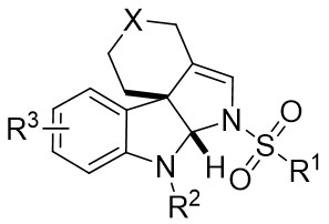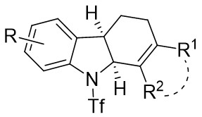 63. Miura T, Funakoshi Y, Murakami M. Intramolecular dearomatizing [3+2] annulation of α-imino carbenoids with aryl rings furnishing 3,4-fused indole skeletons. J Am Chem Soc. 2014;136(6):2272-2275.[DOI]
