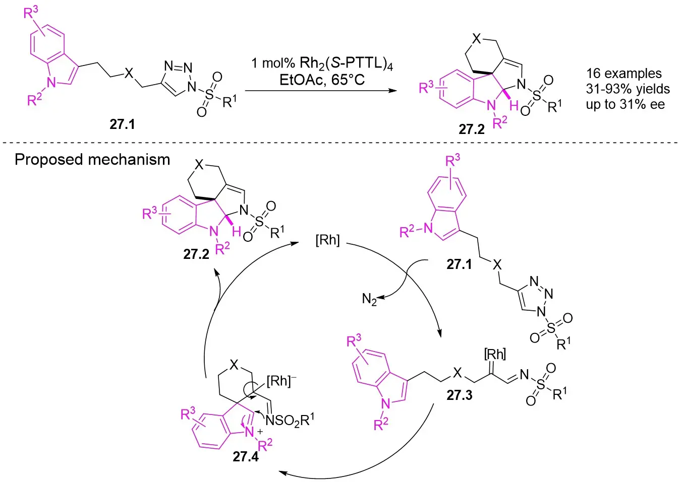 ![]() | Intermolecular Annulation![]() | Rh2(R-PTTL)4 | ![]() | [74] |