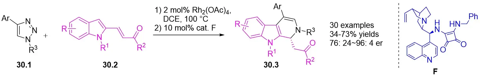 72. Rajasekar S, Anbarasan P. Tandem Rh(II) and chiral squaramide relay catalysis: Enantioselective synthesis of dihydro-β-carbolines via insertion to C-H bond and aza-michael reaction. Org Lett. 2019;21(9):3067-3071.[DOI]