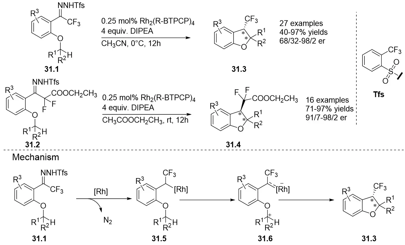 ![]() | Intermolecular Annulation![]() | Rh2(R-3,5-diPhTPCP)4 | ![]() | [74] |