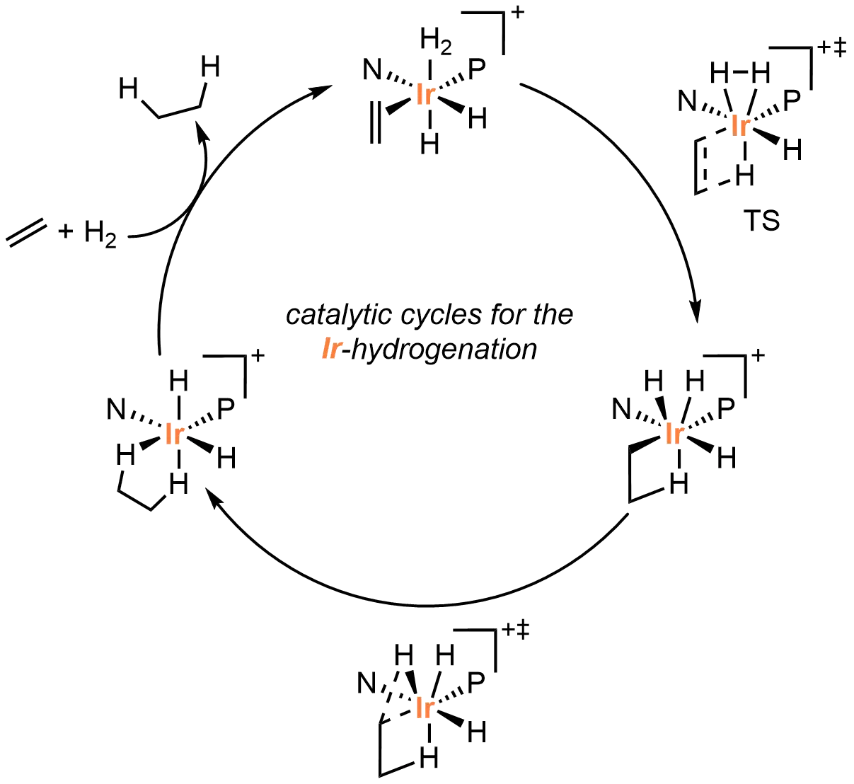 Figure 4. Computational study for the mechanism of Ir-catalyzed asymmetric hydrogenation by Norrby, Andersson, Diéguez, and co-workers. Created in ChemDraw.