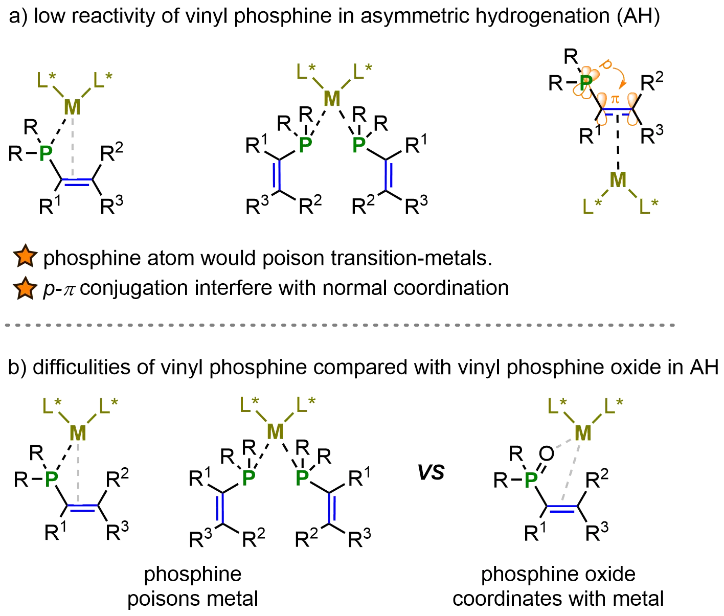 Figure 6. Challenges in the AH of vinyl phosphines. Created in ChemDraw. AH: asymmetric hydrogenation.
