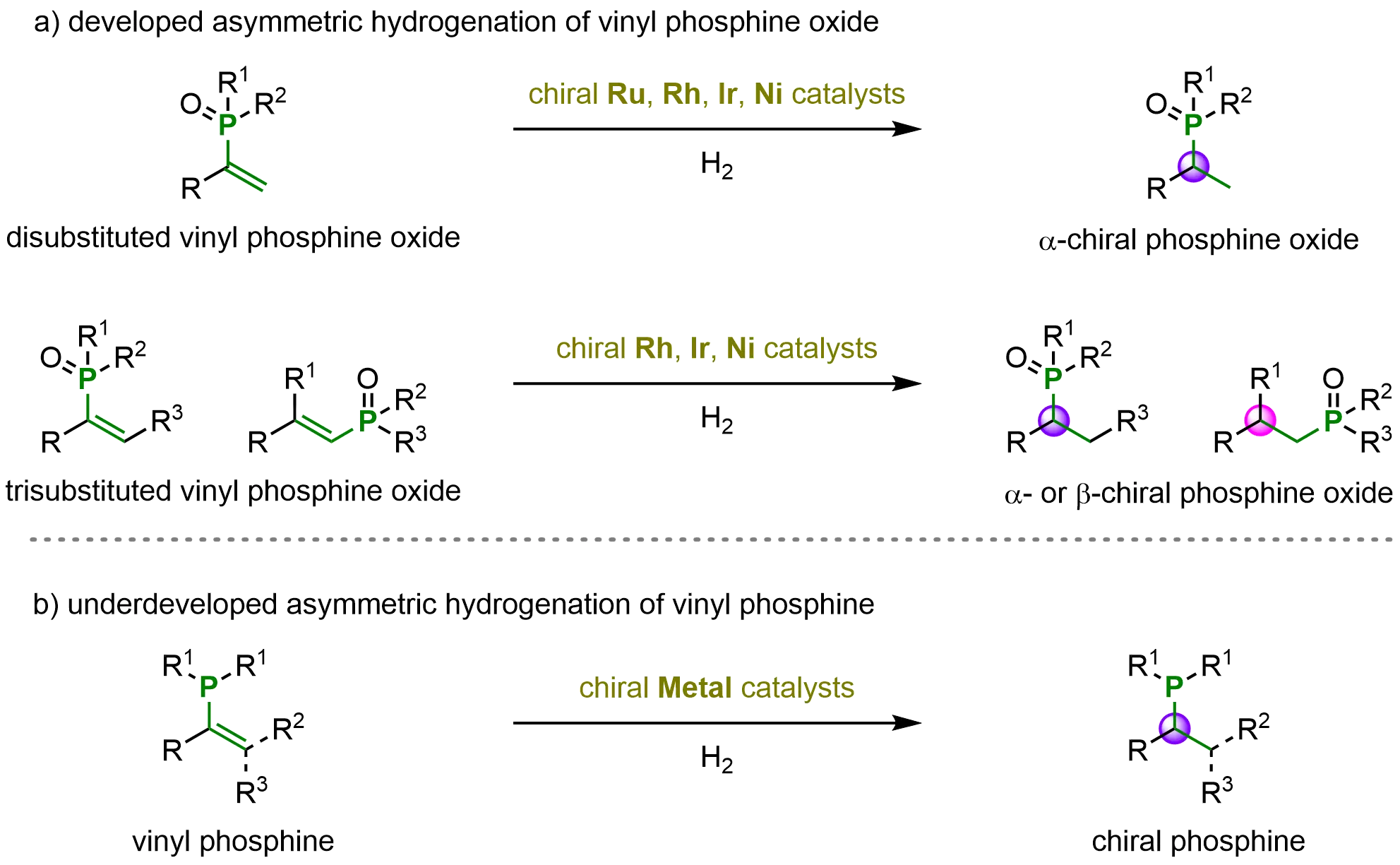 Given the higher intrinsic reactivity, lower synthetic complexity, and the extensive studies already reported on the metal-catalyzed asymmetric hydrogenation of vinyl phosphine oxides, this topic will not be discussed in detail in the present review. Instead, it is anticipated that future advances in the asymmetric hydrogenation of vinyl phosphines will enable the direct and efficient construction of chiral phosphine frameworks, thereby expanding the synthetic toolbox for enantioenriched phosphorus-containing molecules.