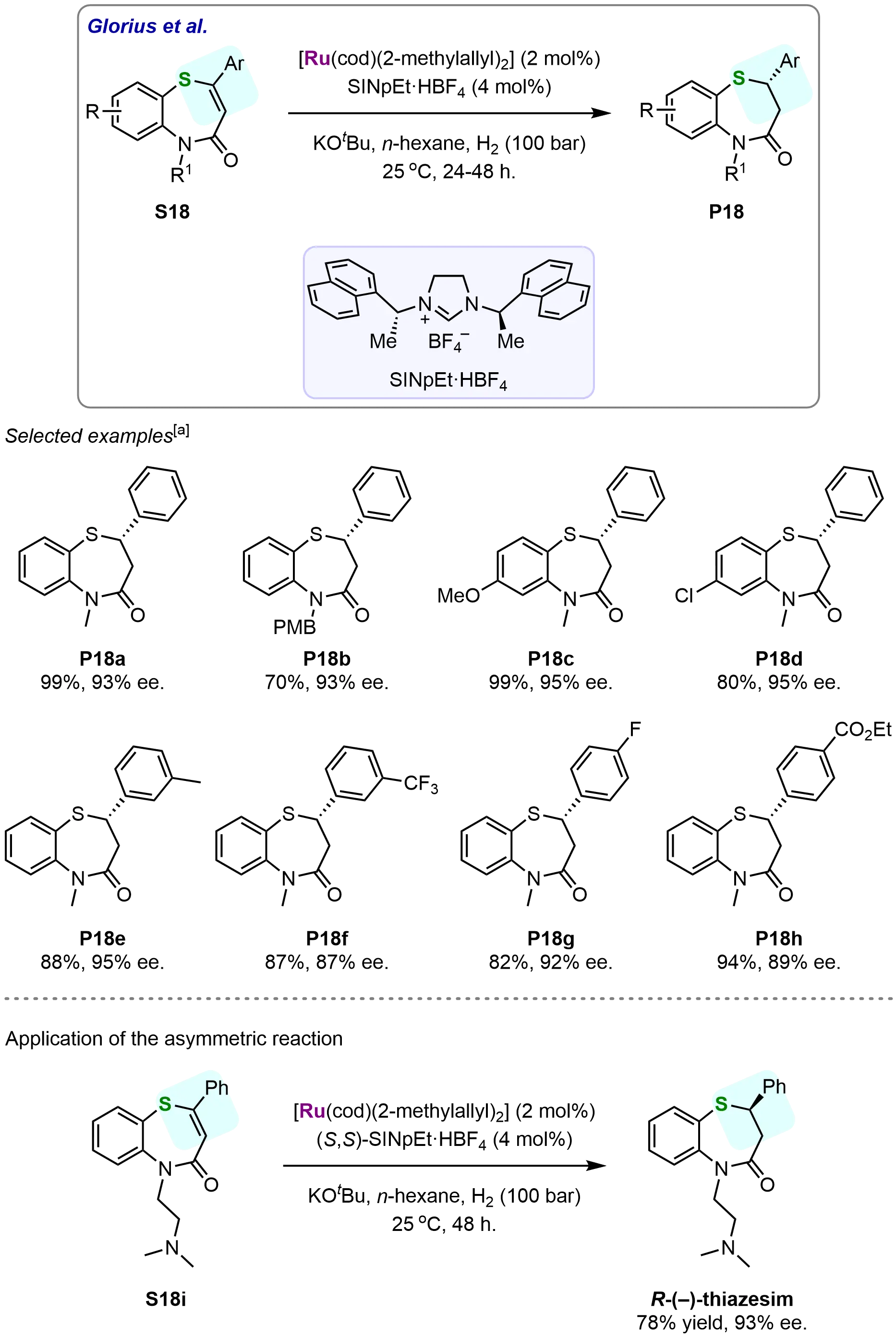 79. Li W, Schlepphorst C, Daniliuc C, Glorius F. Asymmetric hydrogenation of vinylthioethers: Access to optically active 1,5-benzothiazepine derivatives. Angew Chem Int Ed. 2016;55(10):3300-3303.[DOI]