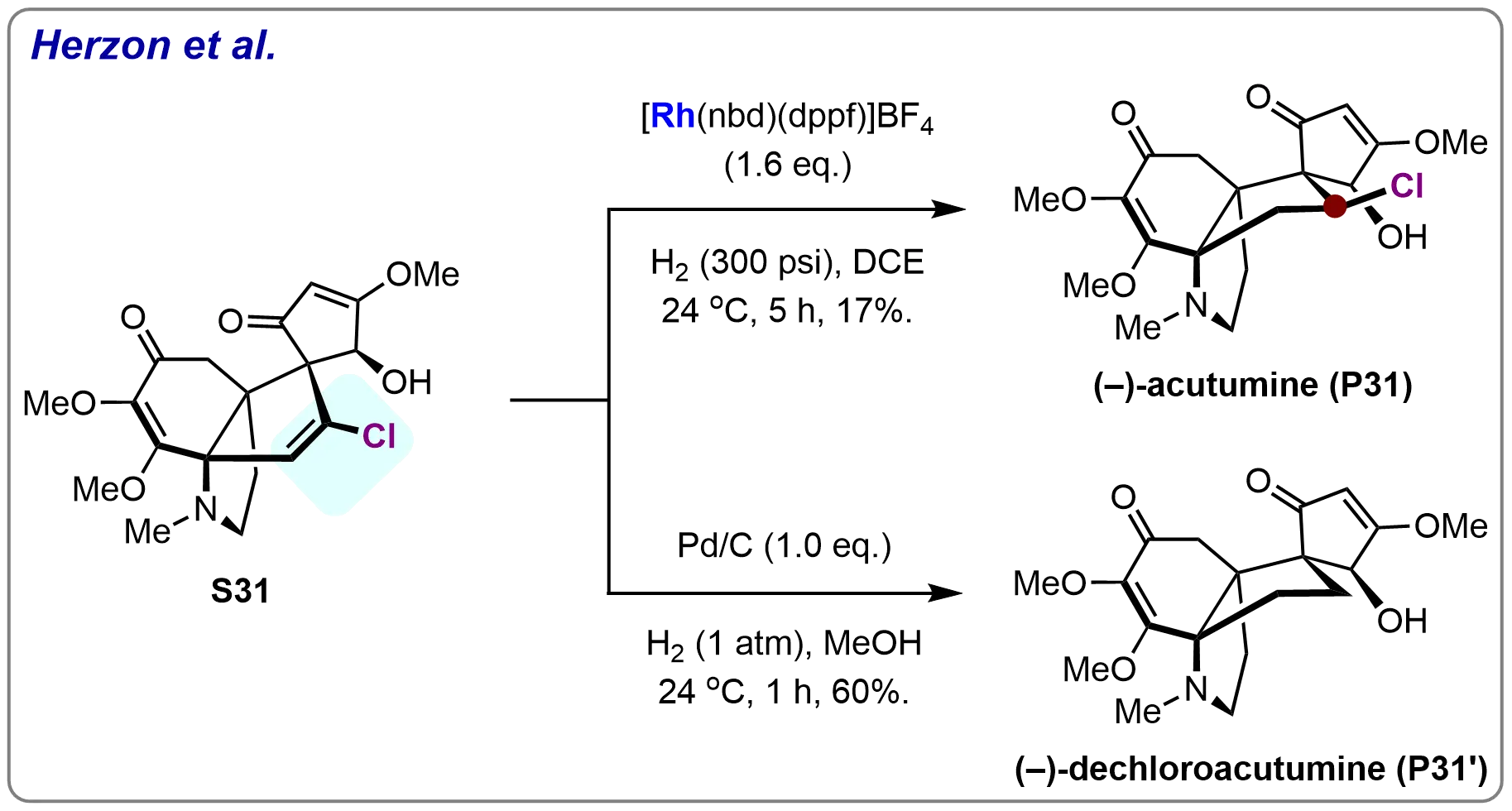 91. King SM, Calandra NA, Herzon SB. Total syntheses of (-)-acutumine and (-)-dechloroacutumine. Angew Chem Int Ed. 2013;52(13):3642-3645.[DOI]