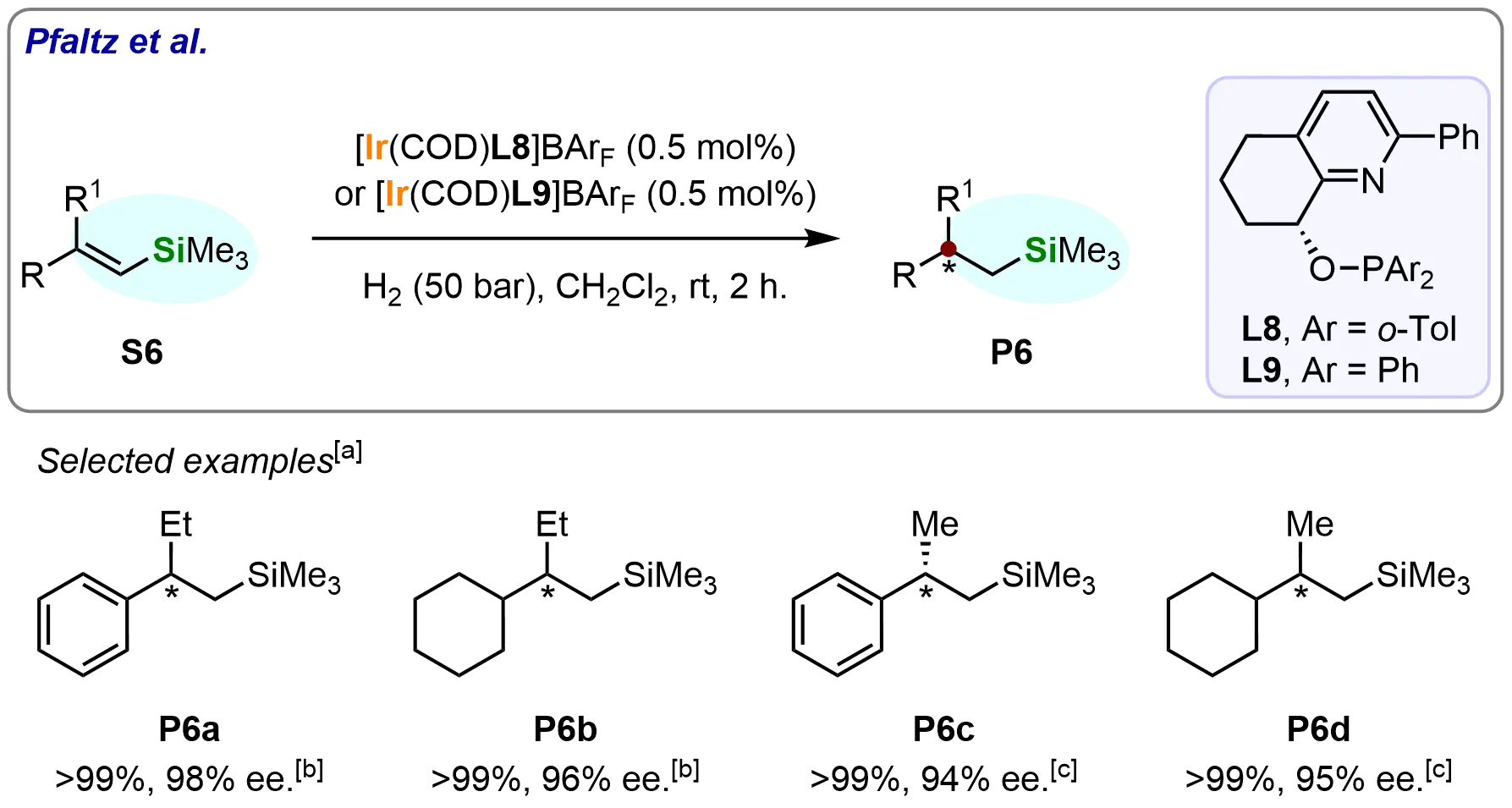 66. Wang A, Bernasconi M, Pfaltz A. Iridium-catalyzed enantioselective hydrogenation of vinylsilanes. Adv Synth Catal. 2017;359(15):2523-2529.[DOI]