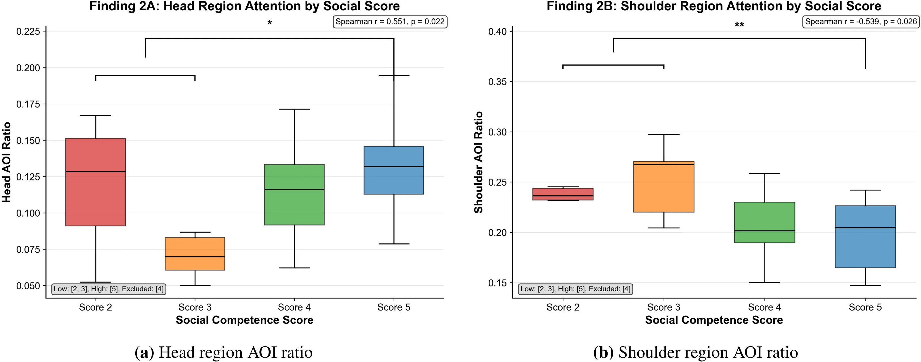 RQ2: Do gaze-allocation patterns reflecting preferential attention to high-information-value speaker regions (head/face) while minimizing focus on non-informative peripheral areas (shoulders) predict social competence levels?