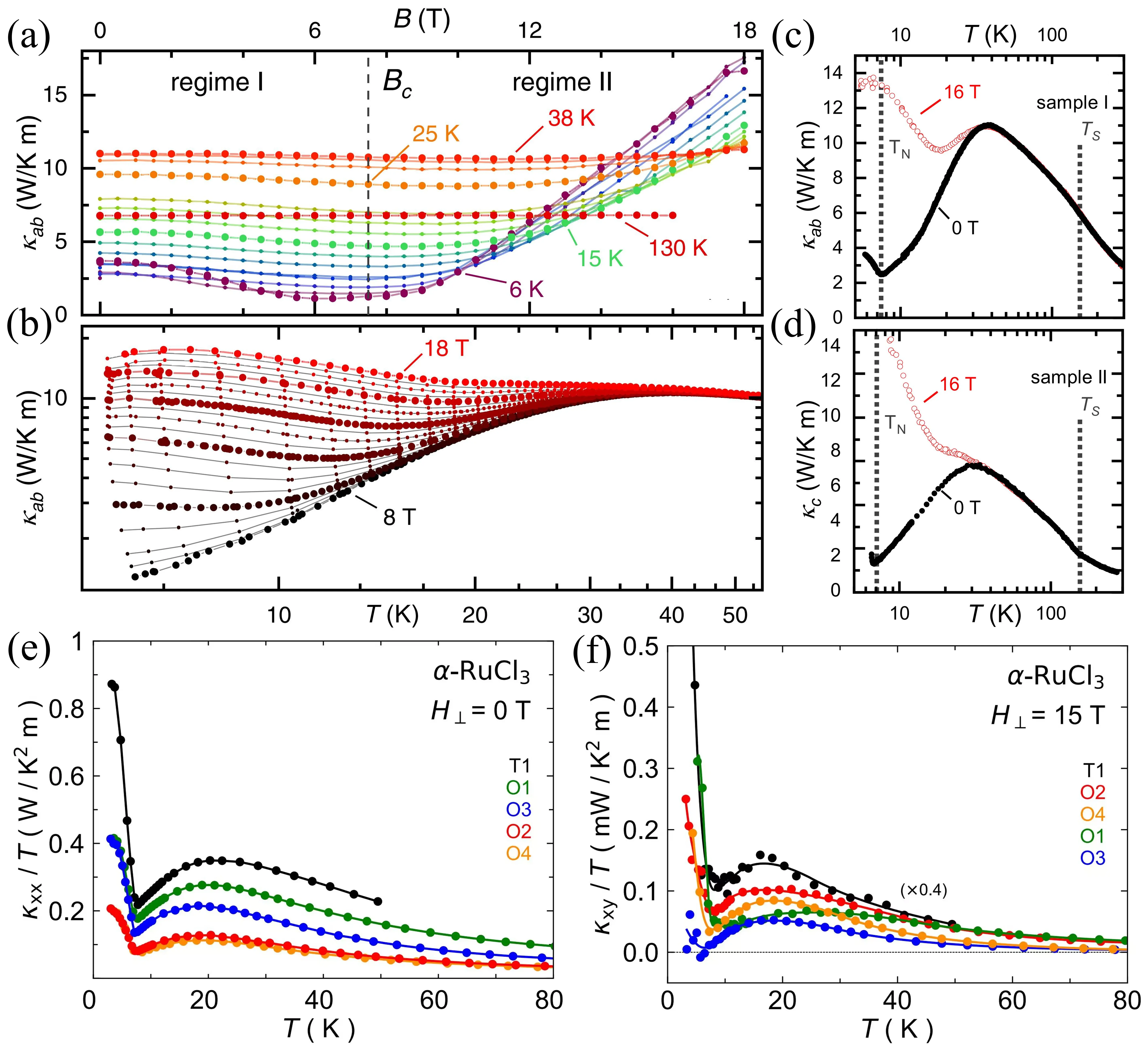 155. Czajka P, Gao T, Hirschberger M, Lampen-Kelley P, Banerjee A, Yan J, et al. Oscillations of the thermal conductivity in the spin-liquid state of α-RuCl3. Nat Phys. 2021;17(8):915-919.[DOI]