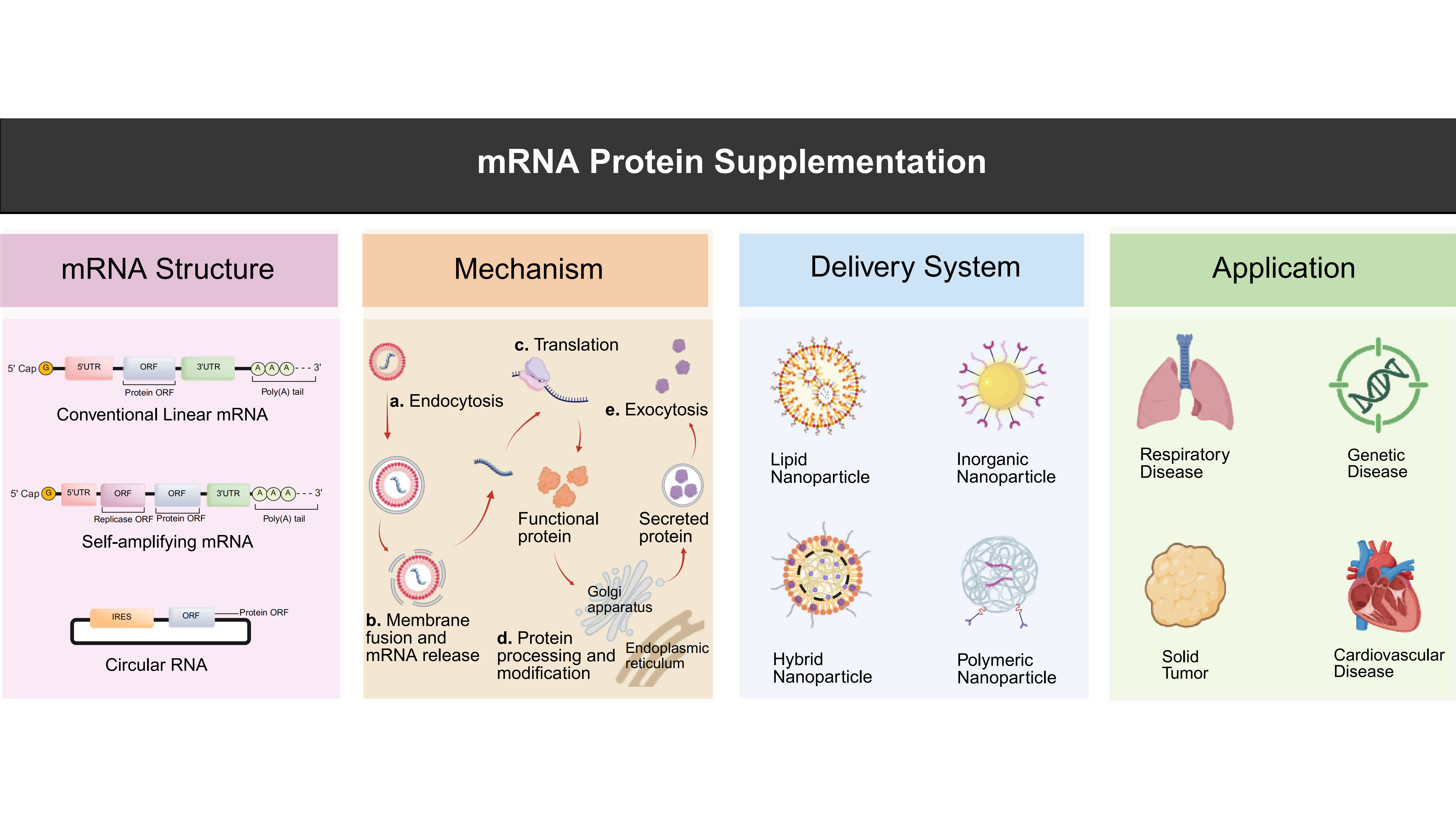 Messenger RNA (mRNA) protein replacement therapy harnesses synthetic mRNA to direct endogenous protein synthesis, offering a versatile approach to restore or substitute proteins that are absent or dysfunctional in disease. Here, we review recent advances ...